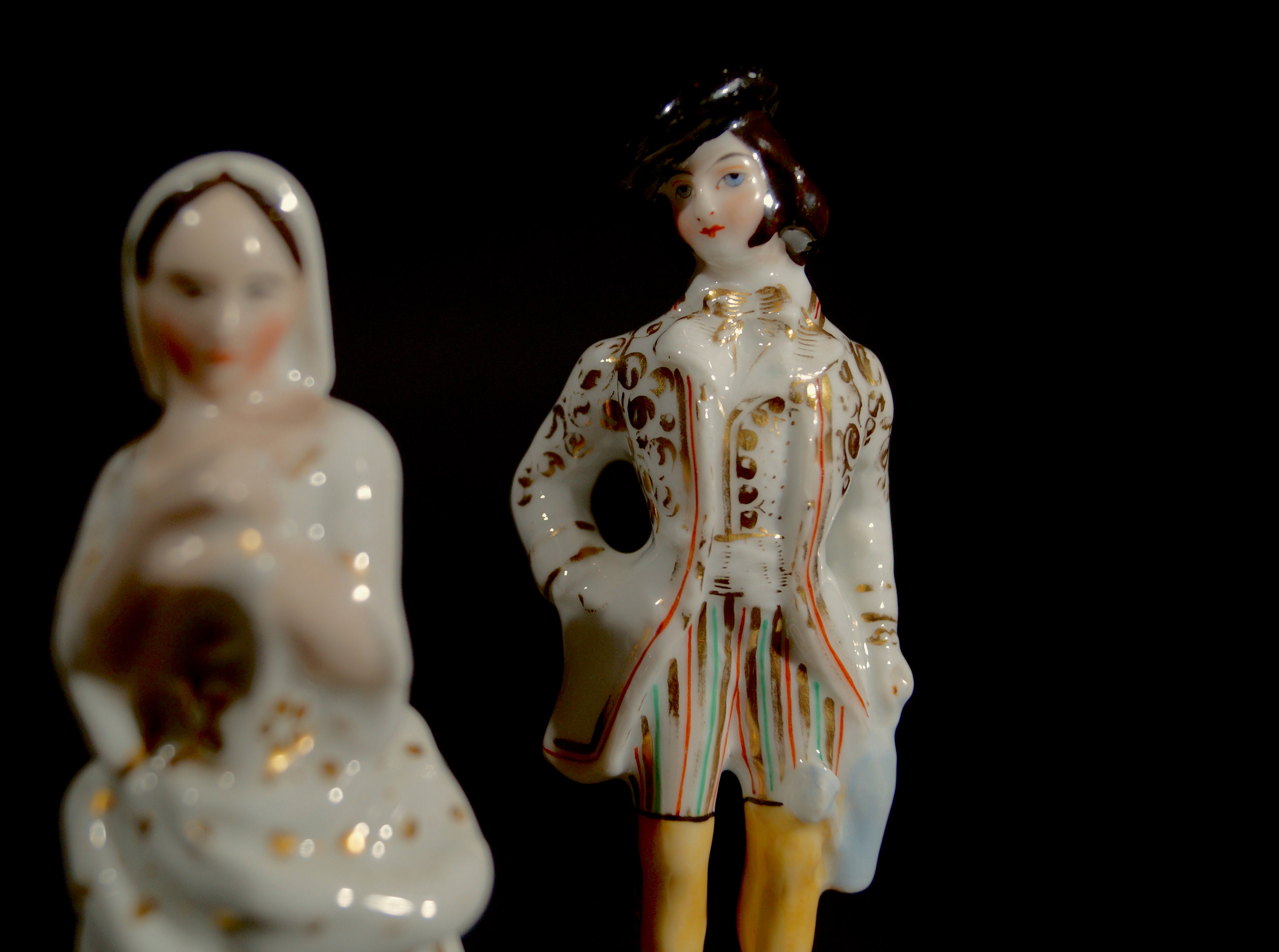 These genuine old Staffordshire porcelain statuettes will make a great showpiece in your home.